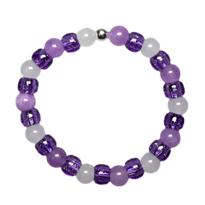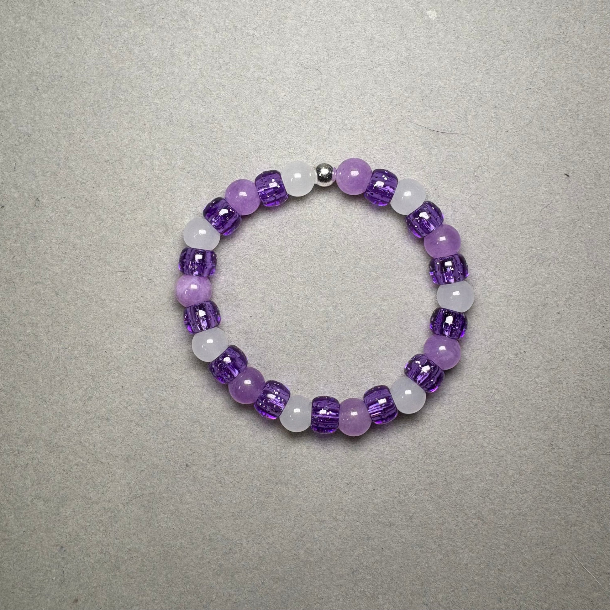 Purple Natural Stone Beads | White Frosty Beads | Purple Pony Bead Bracelet